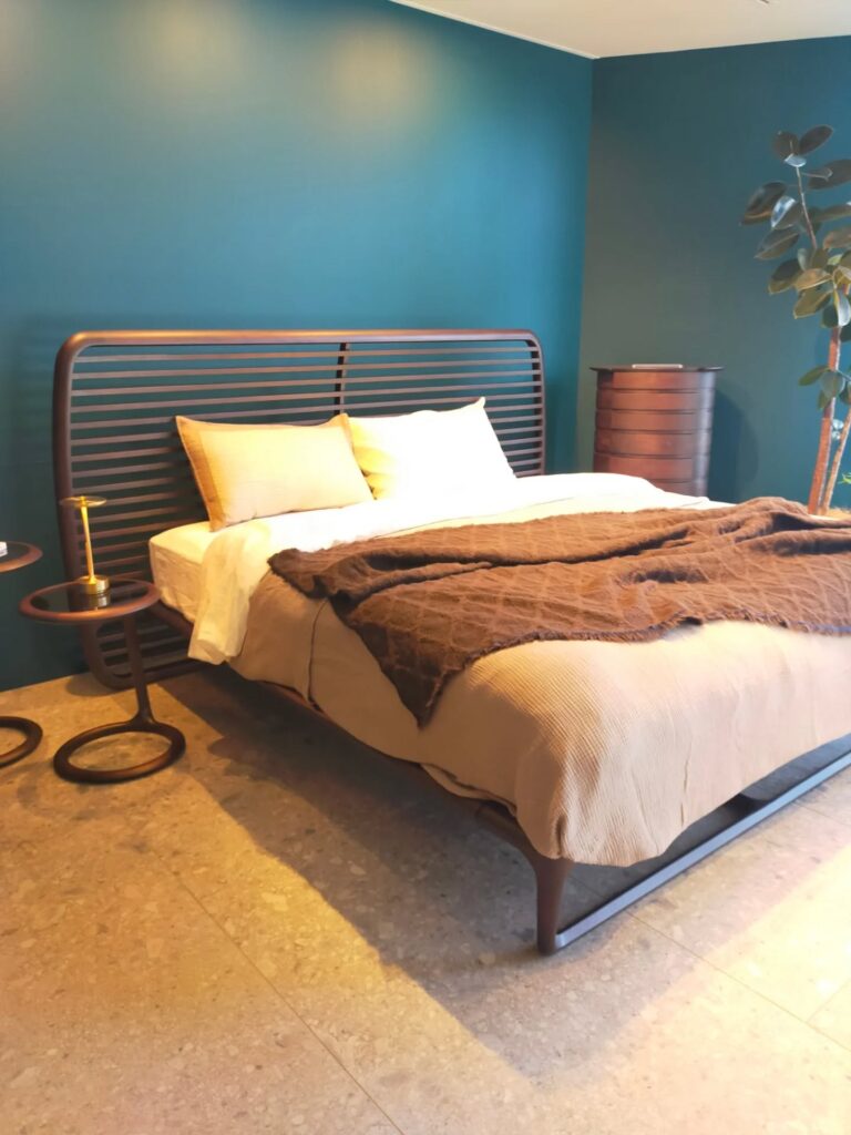 光がスリットを通り抜けると、床に落ちる影が木漏れ日のように揺れ、部屋に静かな表情を生み出します。この彫刻のような構造は、カッシーナの職人が伝統技術とCNC加工を組み合わせ、約6時間かけて仕上げるもの。触れるだけで木の質感と丁寧な仕事が伝わってきます。