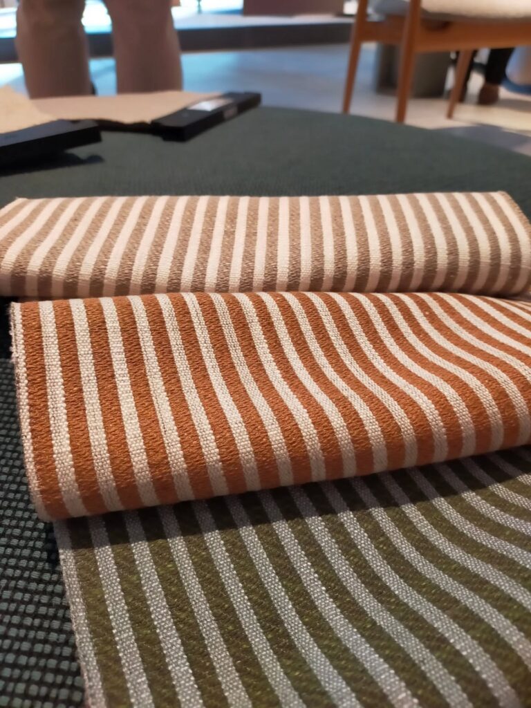 新作の生地も見せて頂きましたが、今どきのニュアンスカラーで、モダンなデザインの家具も心休まる雰囲気になりそうです✨