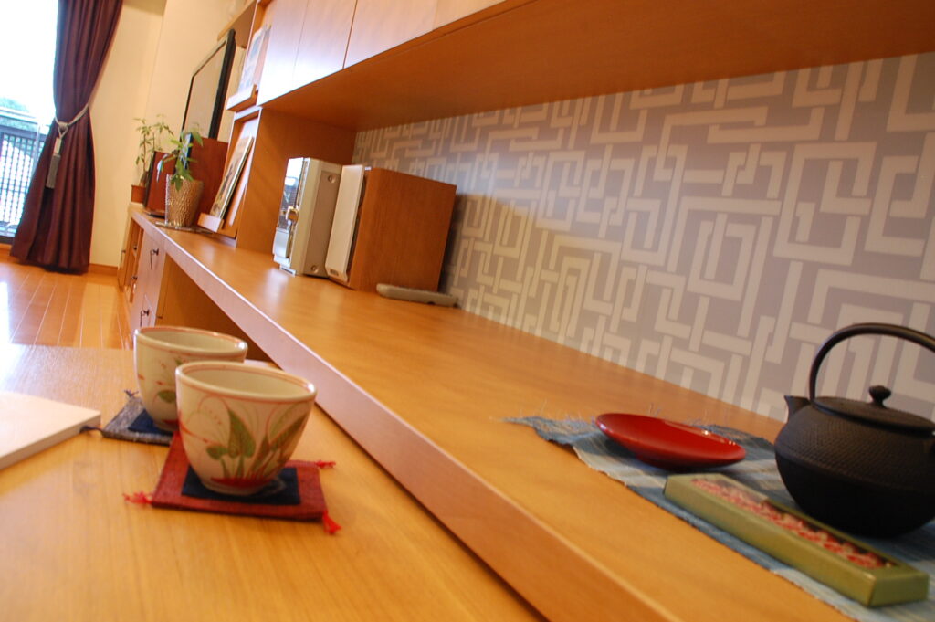 今回は、大工さんに木のカウンターを造作していただきました。