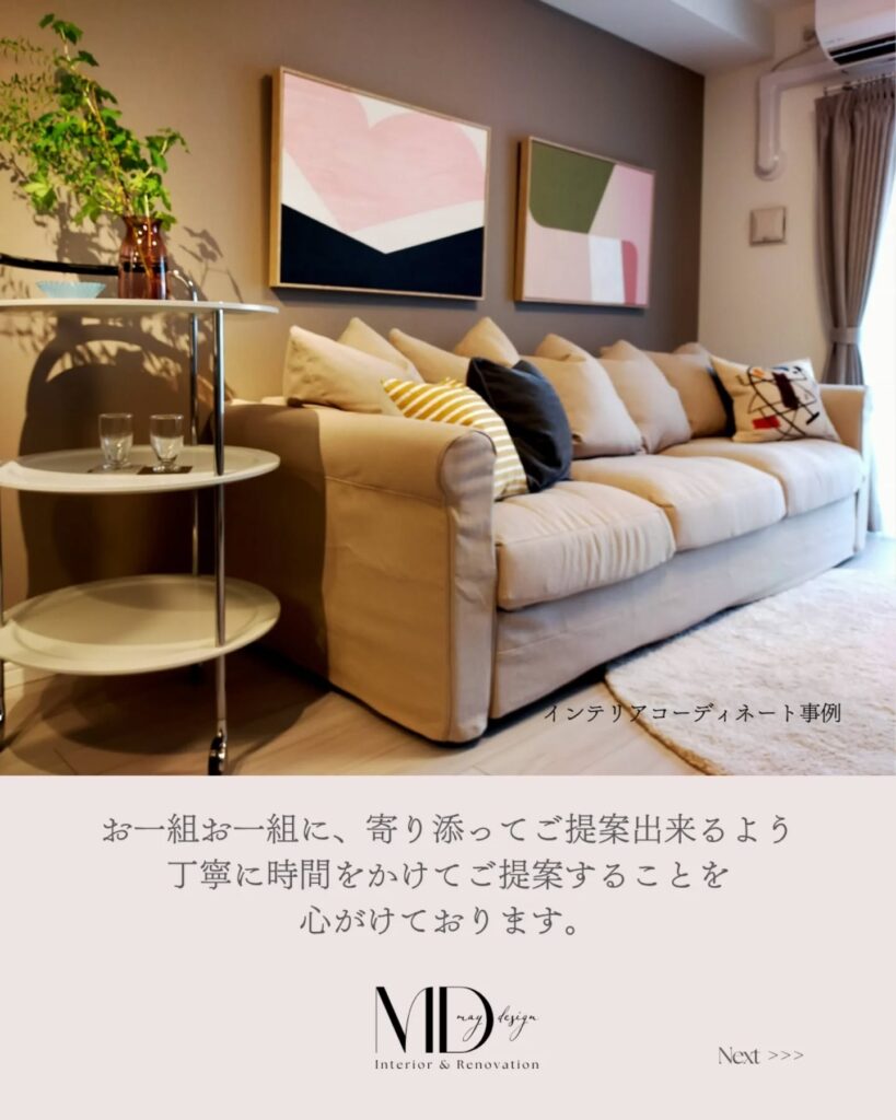 • 「あなたのこだわりから、あなただけの居心地良い空間を」それがメイデザインのコーディネートです。