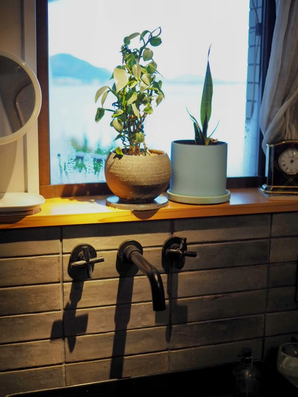 窓辺の植物もいきいきして見えます🌱洗面台の前に立つと海の景色がふっと心をほどいてくれます🌊