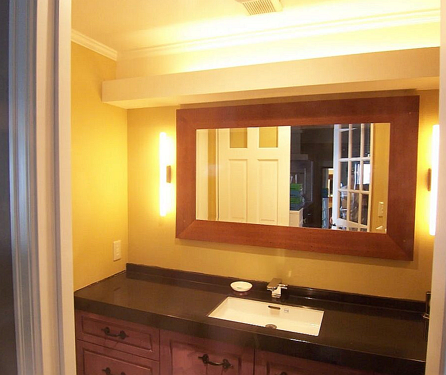 横幅のある大きなミラーを設けて、空間に余白を生みます。