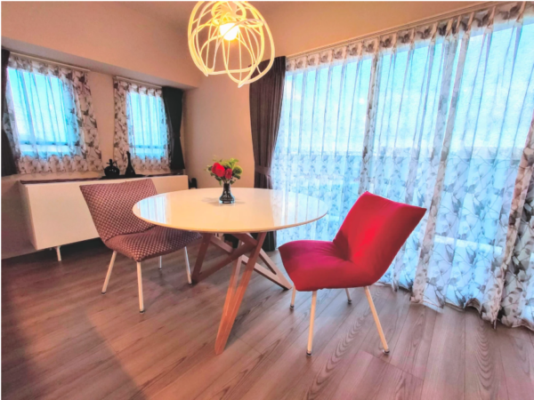 ベッドにいれば広やかな寝室、ダイニングにいれば伸びやかな食卓へ。